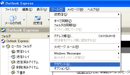 | 1. 左上メニューバーから「ツール」をプルダウンし、「アカウント」をクリックします。 |