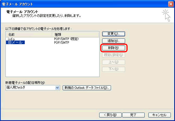 4. 削除したいアカウントを選択し、画面右の「削除」をクリックしてください。