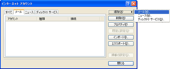 | 4. 画面右側の「追加」をクリックし、「メール」をクリックしてください。 |