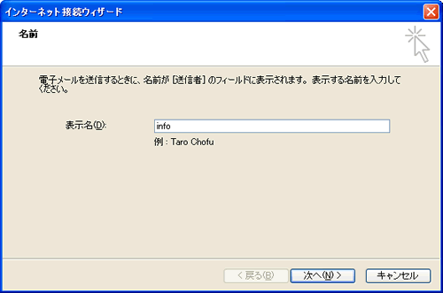 | 5. メールの受信者に、送信者として記載される名前(または社名など)を入力し、 「次へ」をクリックしてください。 |