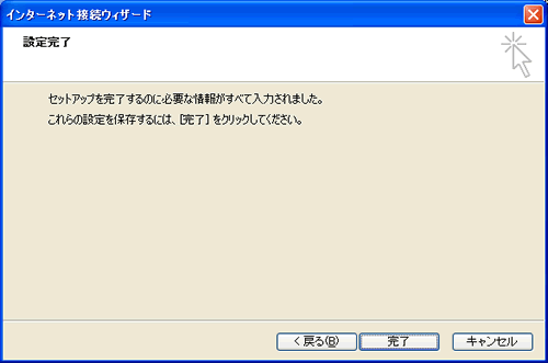 | 9. 「完了」ボタンをクリックし、以上で基本的なメール設定は終了です。 続いて詳細設定へ進んでください。 |